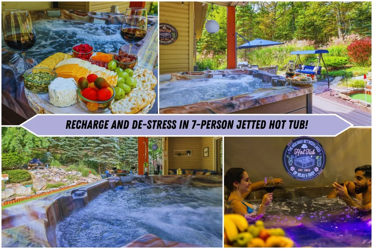 Hideaway Between Lakes is ideally located between two picturesque lakes - Big Boulder Lake and Lake Harmony, offering breathtaking views and a tranquil atmosphere for a perfect retreat. With the shimmering waters of both lakes in very close proximity, you'll find yourself surrounded by natural beauty and serenity, providing an exceptional setting to unwind and rejuvenate.