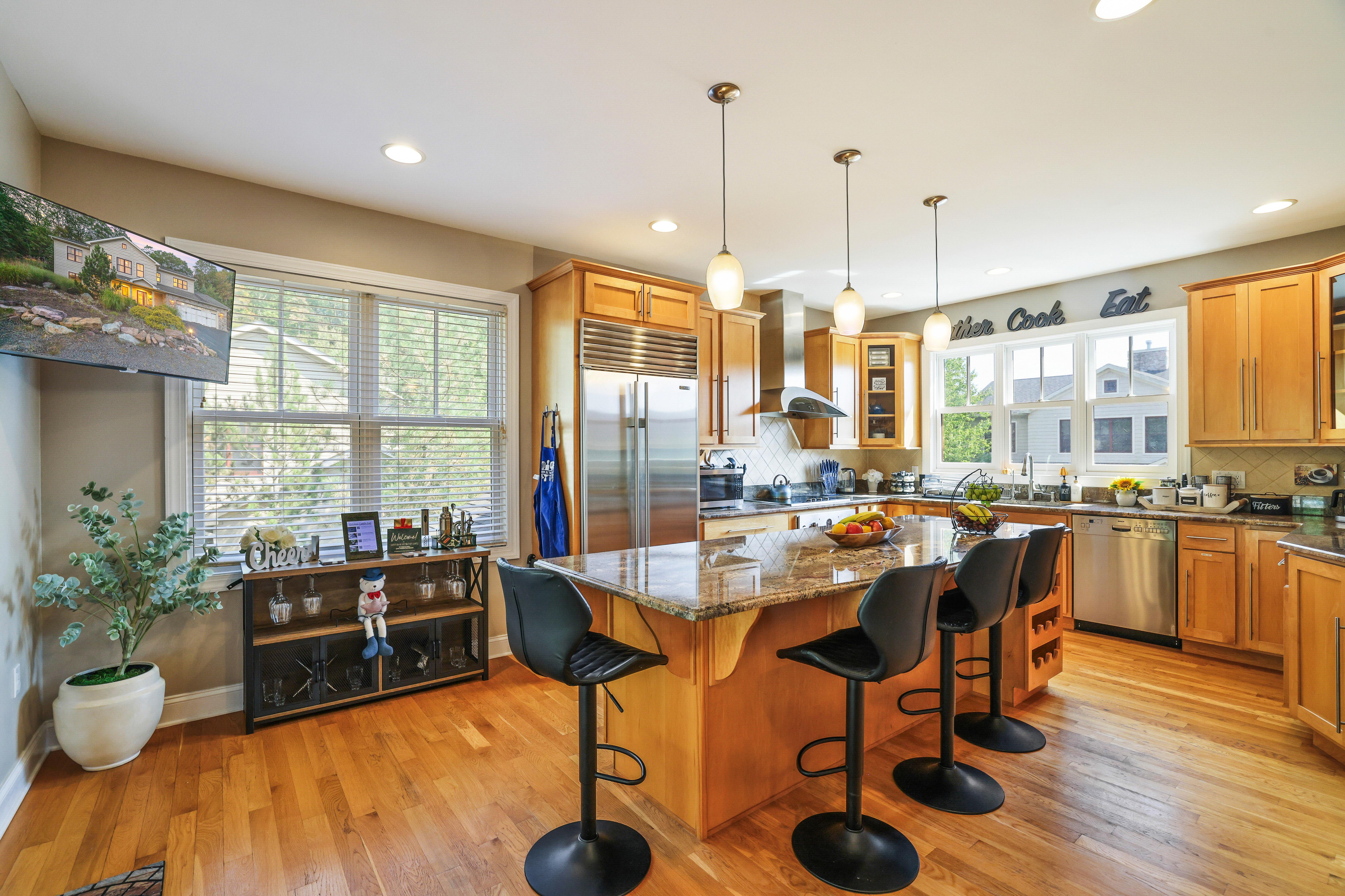 ✔ Fully Equipped Kitchen with stainless steel appliances: Vitamix Blender, Juicer, Toaster, 4-in-1 Microwave Oven